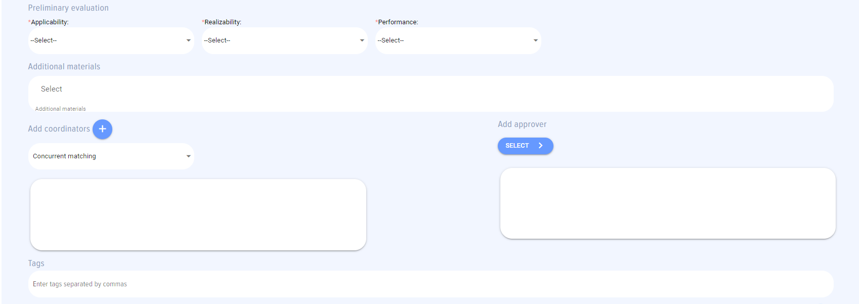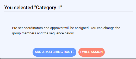 If a category without set coordination modes or employees added is selected, nothing happens, and an employee should add coordinators and approvers manually.