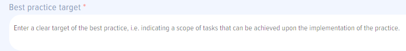 image.png - “Best practice target” field. Here is for an employee to describe the results that can be achieved by implementing the best practice.