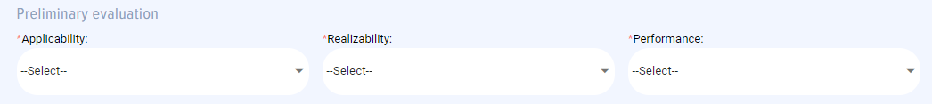 scoring evaluation section for the best practice suggested (express evaluation is carried out by an employee). The employee evaluates the best practice according to the following criteria: