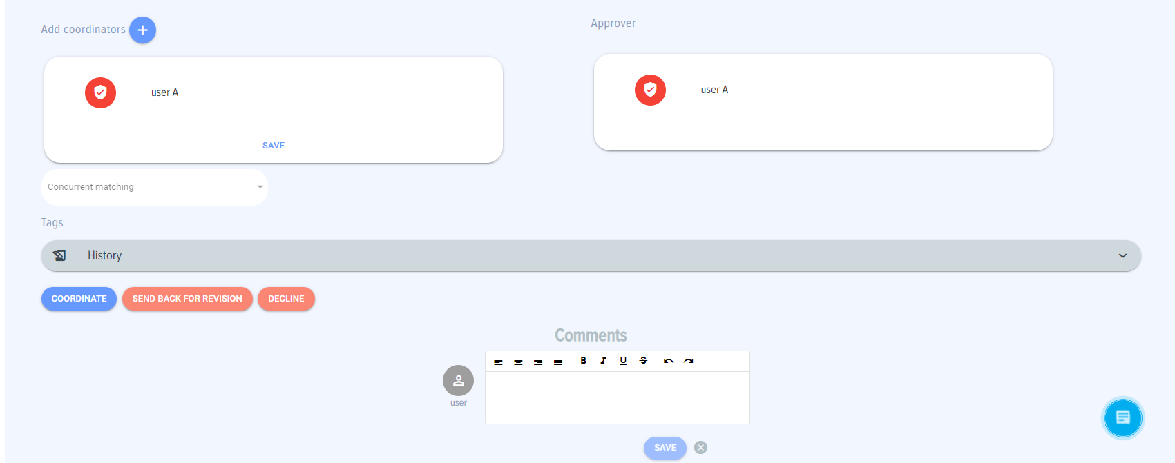 Coordination depends on a practice. If a practice is approved by a joint body it can be added to Coordinators, while the chairman of a joint body can be appointed as Approver. Please refer to App Roles section for further details on the roles.