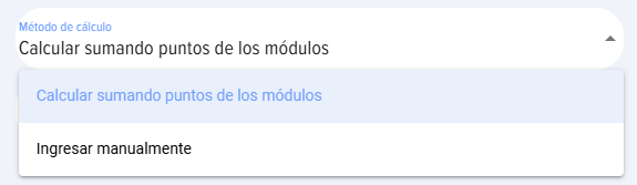 - Introducir manualmente: la cantidad de puntos del curso se introduce manualmente.