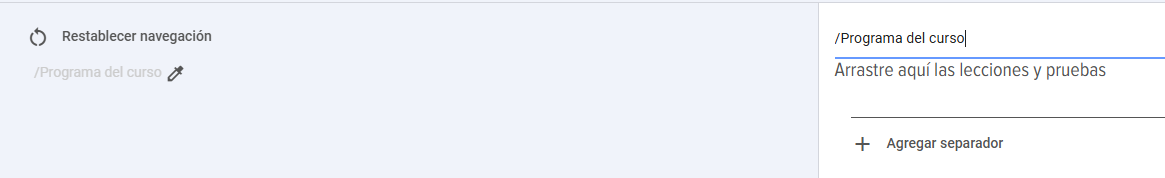 - Representación en árbol: Permite crear una estructura más compleja con subniveles. Después de activar este modo, se pueden arrastrar módulos a la zona "Program del curso" y crear separadores, dentro de los cuales también se pueden añadir módulos, formando una estructura jerárquica.