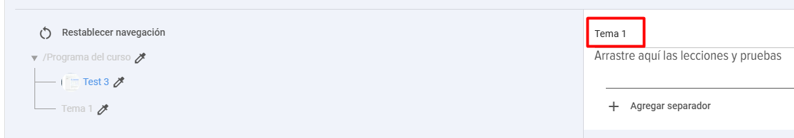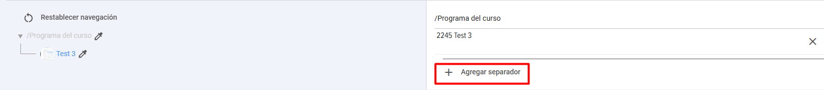 Para agregar un separador entre módulos (por ejemplo, bloques temáticos), haga clic en el elemento