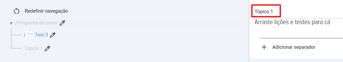 - Arrastre a la zona (columna) "Program del curso" y suelte. Asegúrese de que Lección/Test quede en la columna "Program del curso".