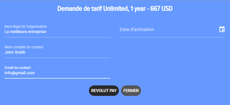 IIMPORTANT ! Champ Date d'activation du plan - la date à partir de laquelle le plan sera activé. Par exemple, vous effectuez le paiement le 10. Votre abonnement actuel est valable jusqu'au 20. Dans ce champ, vous pouvez indiquer la date du 20, alors le plan sera activé le 20. Si rien n'est indiqué dans ce champ, le plan sera activé immédiatement après réception du paiement.