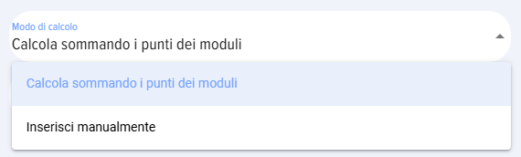 - Inserisci manualmente: il numero di punti per il corso viene inserito manualmente.