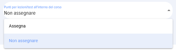 Per impostazione predefinita, al completamento del corso vengono assegnati i punti impostati nelle impostazioni generali dell'applicazione (Impostazioni - Impostazioni applicazione - Punti). Se non è impostato nulla nelle impostazioni generali e in questa impostazione, i punti non verranno assegnati. Se si attiva questo elemento, il corso avrà un sistema di attribuzione punti personalizzato.