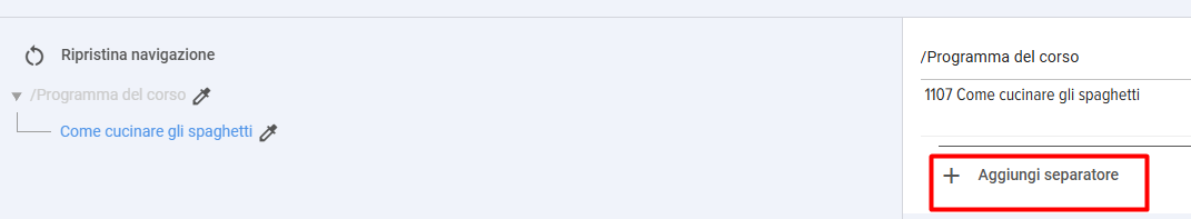 Per aggiungere un separatore tra i moduli (ad esempio, blocchi tematici), clicca su