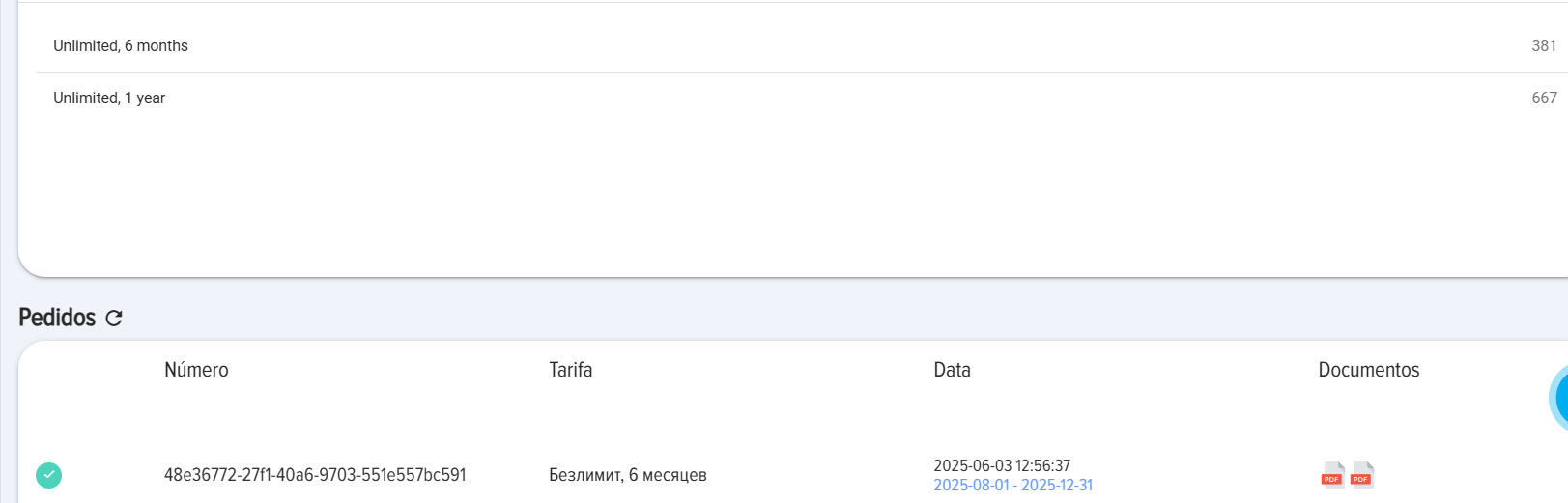 IMPORTANTE! Campo data de ativação do plano. - data a partir da qual o plano será ativado. Por exemplo, você realiza o pagamento no dia 10. A assinatura atual ainda é válida até o dia 20. Neste campo, você pode especificar o dia 20, então o plano será ativado no dia 20. Se nada for especificado neste campo, o plano será ativado imediatamente após o pagamento ser recebido.
