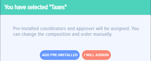 If selected «I WILL ASSIGN» coordinators and approver should be added manually.