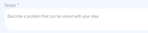 image.png  - «Issue». In this field the problem that solves by a proposed idea is described.