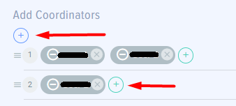 For parallel coordination coordinators are added to the list of coordinators with a plus on the right.