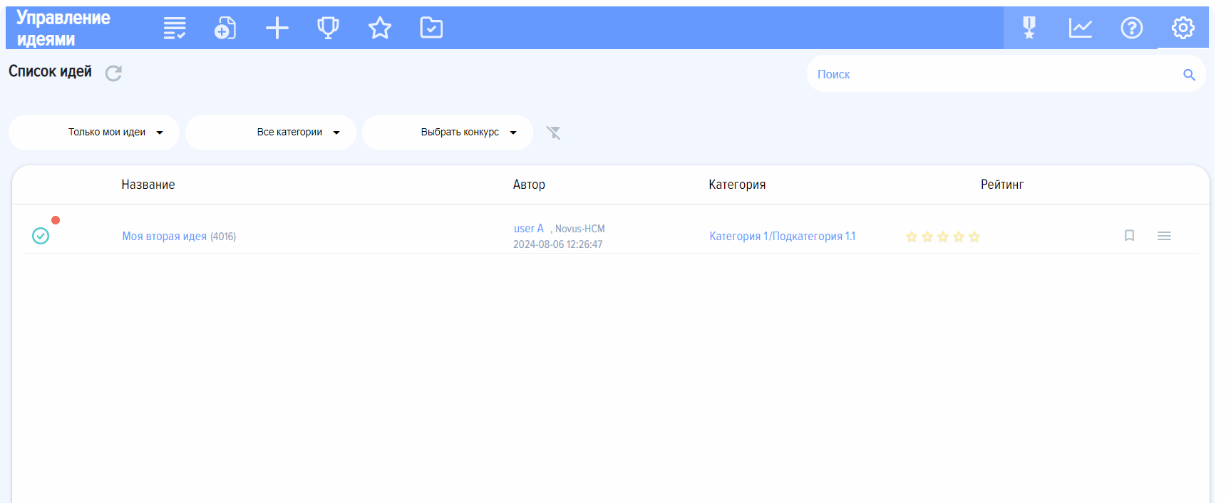 Модератор имеет возможность ограничить доступ к определенным категориям идей. Ограничение доступа осуществляется через категории. При выборе сотрудников или подразделений, которым доступна данная категория идей - соответствующие сотрудники будут видеть данные идеи, другим они будут недоступны.