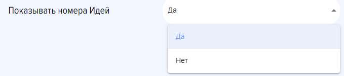 Если отмечен вариант Да, то номера идей будут отображаться в списке идей.