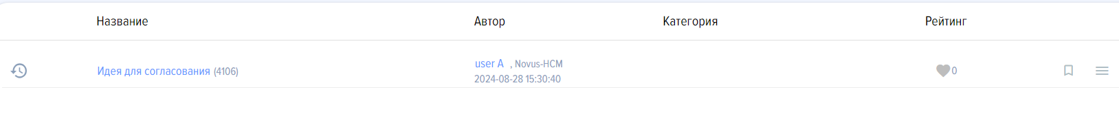 При выборе в главном меню фильтра «На согласовании» отображаются все идеи, которые находятся на согласовании. В идее появляются сотрудники, которые согласуют идею: