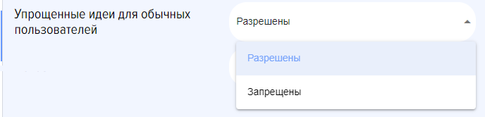 В приложении имеется возможность определить, разрешено или запрещено создание упрощённых идей для обычных пользователей.