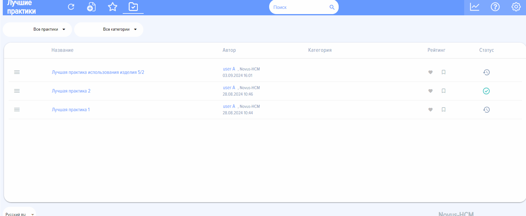 Утверждённые и отклонённые практики могут быть перемещены в архив. Переместить в архив её могут: автор практики, модератор приложения или администратор портала Битрикс24.