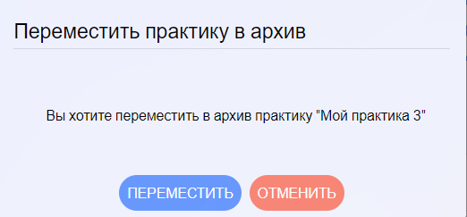 При выборе в меню Архив будут отображены практики, переведённые в архив.